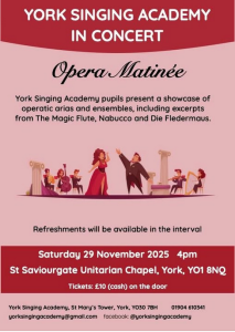 York Singing Academy concert on Saturday 29th November at 4pm.